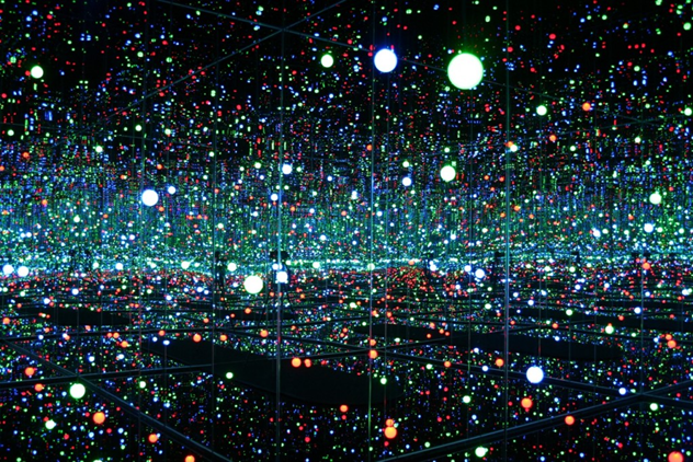 “Figure 3: An example of Yayoi Kusama’s art that does not have a title and was exhibited using small lights as dots and mirror to reflect the dots.”